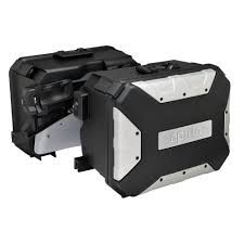 Ζεύγος πλαϊνών βαλιτσών από ανθεκτικό nylon με ένθετα αλουμινίου, ιδανικές για καθημερινές μετακινήσεις αλλά και ταξίδια. Τοποθετούνται στο όχημα με τις ειδικές βάσεις που συμπεριλαμβάνονται στον κωδικό και μπορούν να αφαιρούνται/επανατοποθετούνται στο όχημα εύκολα και γρήγορα χωρίς να επηρεάζεται το στυλ του οχήματος. Διαθέτουν χερούλι μεταφοράς για ευκολία στην χρήση. Χωρητικότητα αριστερή 37Lt, δεξιά 27.5Lt. Οι στιβαρές αυτές βάσεις τους που περιλαμβάνονται στον κωδικό αντικαθιστούν τα πλαϊνά πάνελ κάτω από τη σέλα και επιτρέπουν την εύκολη απελευθέρωση και τοποθέτηση των πλαϊνών βαλιτσών.