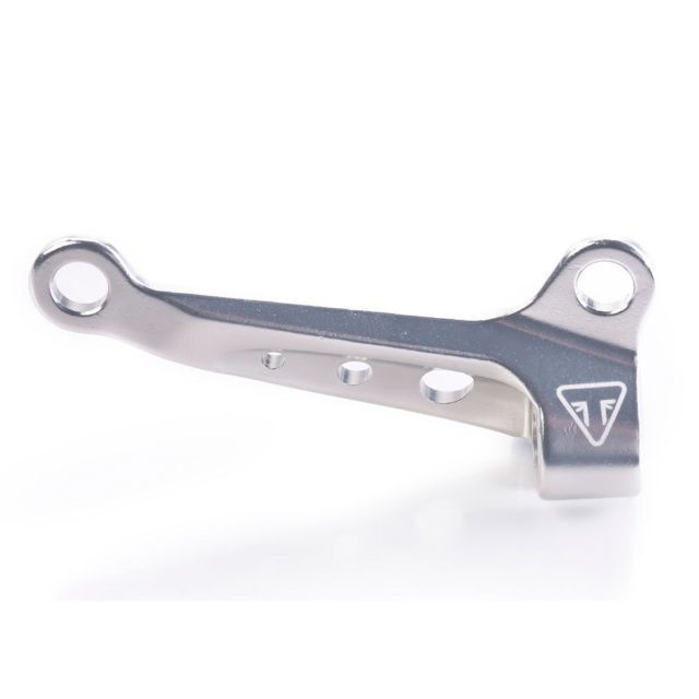 A CNC machined aluminium Clutch Cable Guide bracket designed to replace the original part