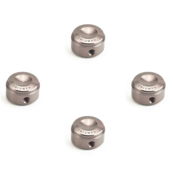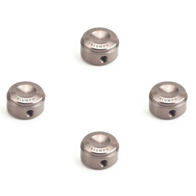 A set of four CNC machined Headbolt Covers featuring subtle Triumph branding