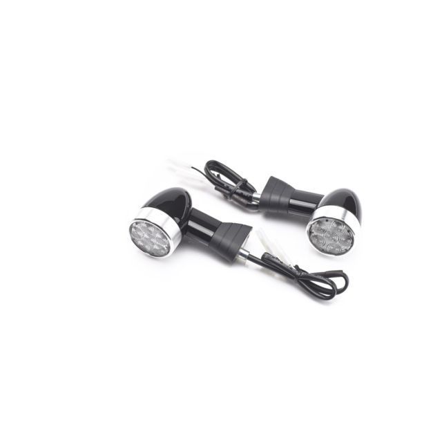 A set of bullet-style Rear LED Indicators featuring a turned aluminium bezel, gloss black body and clear LED lens